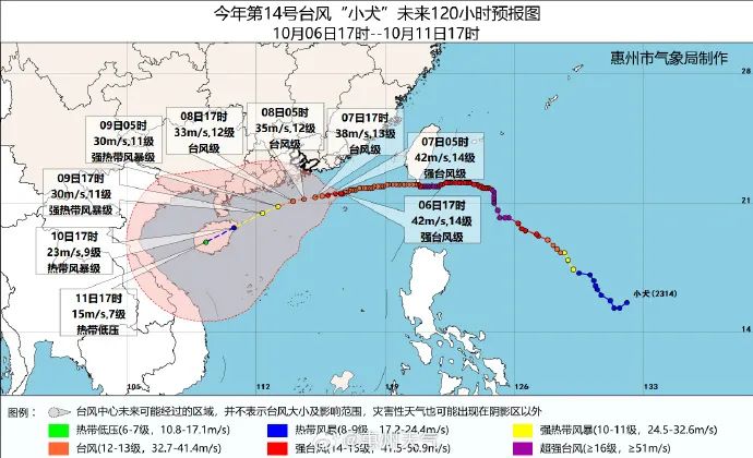6日17時,強臺風“小犬”中心位于