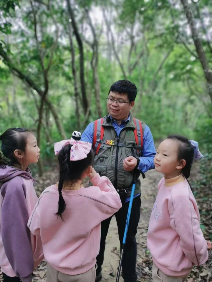 2020年,鄒忠典開始承接惠州市內(nèi)自然保護區(qū)的科普宣教公益活動,邀請學(xué)生等團體走進山林,開展自然教育,了解生態(tài)系統(tǒng)、本地動植物資源,兼顧護林員和森林公安日常工作等。他還把森林的知識帶進學(xué)校開展科普活動,教導(dǎo)學(xué)生們要熱愛自然,自覺減少對自然的傷害。