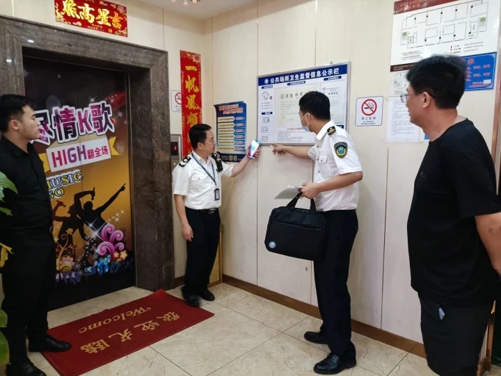 在足浴店、浴室、歌舞廳、KTV等經(jīng)營單位,衛(wèi)生執(zhí)法人員結(jié)合《國家衛(wèi)生城市迎復(fù)審標(biāo)準(zhǔn)》要求,主要檢查了上述公共場所是否取得有效衛(wèi)生許可證,是否于醒目位置公示衛(wèi)生許可證、衛(wèi)生信譽(yù)度等級(jí)和衛(wèi)生檢測結(jié)果,是否設(shè)置有清洗消毒設(shè)施并按規(guī)范落實(shí)公共用品用具清洗、消毒、保潔,從業(yè)人員是否持有效健康合格證明上崗、是否保持良好的環(huán)境衛(wèi)生,浴室是否張貼“禁止性病、傳染性皮膚病患者沐浴”標(biāo)識(shí)等情況。