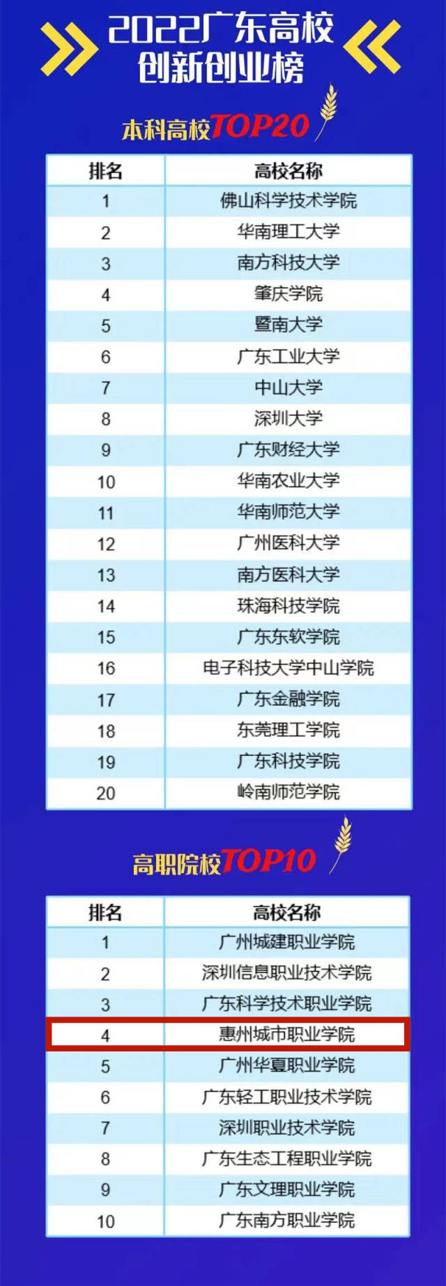 近日,廣東省教育廳、廣東省科學(xué)技術(shù)廳聯(lián)合主辦的2023年粵港澳高校科技成果轉(zhuǎn)化大會(huì)在佛山成功舉辦。大會(huì)發(fā)布了《廣東高?萍汲晒D(zhuǎn)化年度報(bào)告(2022)》和《廣東高?萍汲晒D(zhuǎn)化年度榜單(2022)》。其中,在廣東高校創(chuàng)新創(chuàng)業(yè)榜單上,惠州城市職業(yè)學(xué)院在全省89所高職院校中位列第4名。
