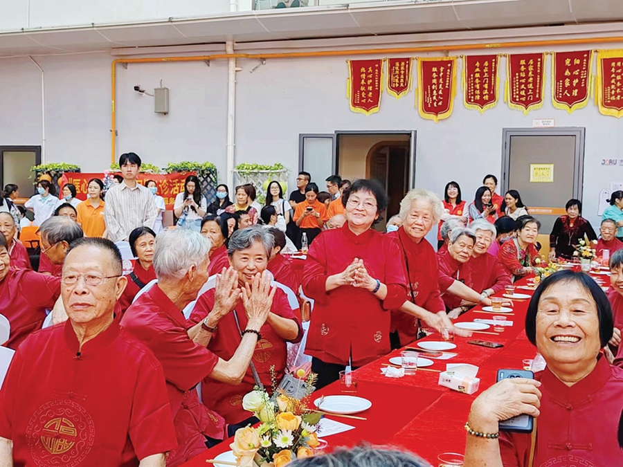 欣賞表演的同時(shí),工作人員還為老人們送上茶點(diǎn),有滋潤(rùn)的龍眼雪梨水,清甜的紅豆豆腐花羹,可口的長(zhǎng)壽面……老人們談笑風(fēng)生,吃得津津有味,他們相互慶賀、彼此祝福,臉上洋溢著對(duì)美好生活的憧憬。