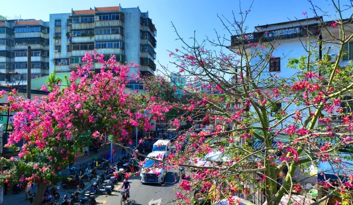 惠城區(qū)橋東市場(chǎng)附近街道的異木棉迎來(lái)盛花期。