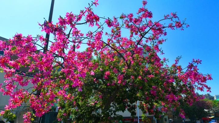 10月19日,惠城區(qū)橋東市場(chǎng)街道旁種植的美麗異木棉進(jìn)入盛花期,粉色花朵成老城區(qū)一景。美麗異木棉亭亭玉立,粉色花朵綴滿綠色的枝頭,一朵朵繽紛絢爛,酷似紫荊,煞是好看。美麗異木棉的花期跨度很長(zhǎng),每年10月至12月是它開得最熱鬧的時(shí)候,眼下正是盛花期。