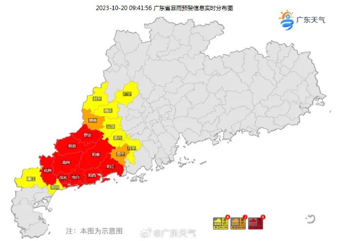 截至9時(shí)41分,全省共生效19個(gè)暴雨預(yù)警(9紅2橙8黃);生效臺(tái)風(fēng)預(yù)警12個(gè)(4黃4藍(lán)4白)和雷雨大風(fēng)黃色預(yù)警6個(gè)。