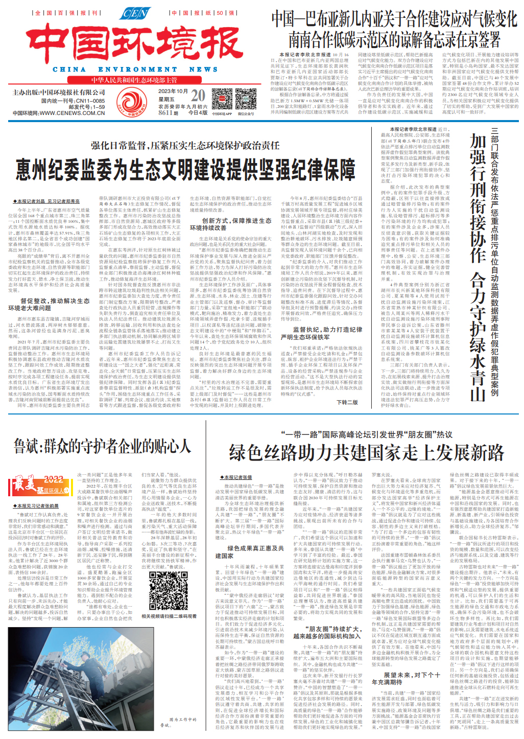 10月20日,《中國環(huán)境報》在頭版頭條推出報道《惠州紀(jì)委監(jiān)委為生態(tài)文明建設(shè)提供堅強紀(jì)律保障》。報道介紹了惠州市紀(jì)委監(jiān)委強化日常監(jiān)督,壓緊壓實生態(tài)環(huán)境保護政治責(zé)任,為生態(tài)文明建設(shè)提供堅強紀(jì)律保障的生動實踐,F(xiàn)全文轉(zhuǎn)載,以饗讀者。