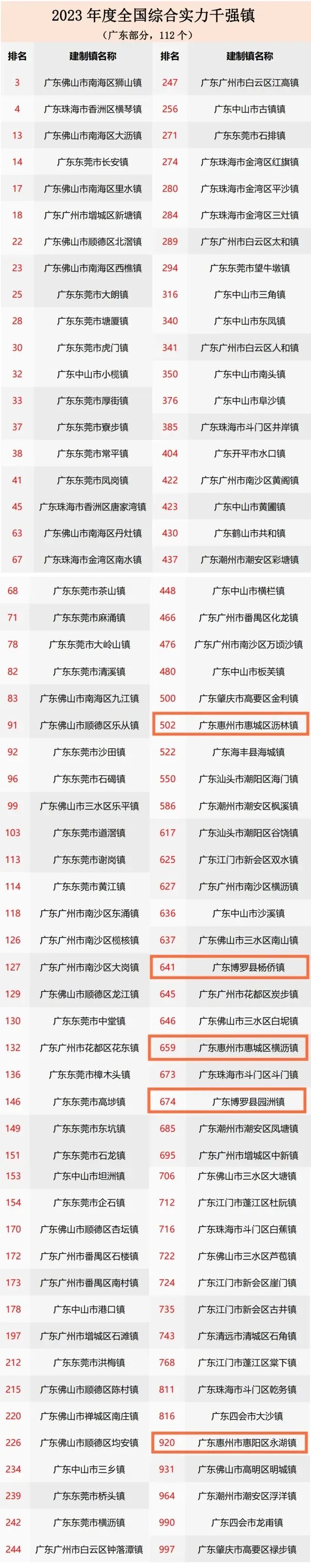 10月20日,在2023年全國千強(qiáng)鎮(zhèn)發(fā)布暨鎮(zhèn)域高質(zhì)量發(fā)展論壇上,《2023年全國千強(qiáng)鎮(zhèn)發(fā)展報(bào)告》正式發(fā)布,2023年度全國綜合實(shí)力千強(qiáng)鎮(zhèn)榜單也隨之公布。在2023年度全國綜合實(shí)力千強(qiáng)鎮(zhèn)榜單中,惠州共有5個(gè)鎮(zhèn)入選,分別為仲愷高新區(qū)瀝林鎮(zhèn)、博羅縣楊僑鎮(zhèn)、惠城區(qū)橫瀝鎮(zhèn)、博羅縣園洲鎮(zhèn)和惠陽區(qū)永湖鎮(zhèn)。