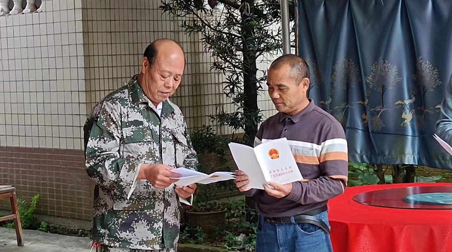 市林業(yè)部門工作人員走村入戶開展《惠州市野外用火管理?xiàng)l例》宣傳。