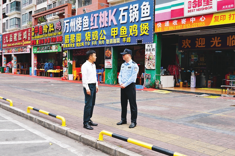 “劉政委、翟書記,你們好!防撞護欄已經(jīng)重新裝好了!苯眨葜菔泄簿謶粽ш犆窬c結(jié)對共建單位仲愷高新區(qū)惠南科技園惠科社區(qū)工作人員一起到社區(qū)夜間經(jīng)濟場所進行安全風(fēng)險防范巡查,發(fā)現(xiàn)存在個別防撞護欄損壞的情況,沒想到工作人員還沒回到社區(qū)辦公室,問題就得到整改落實,從發(fā)現(xiàn)問題到解決問題耗時不到30分鐘。