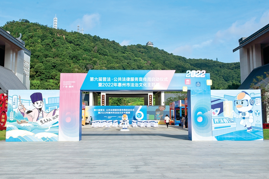 第六屆普法·公共法律服務(wù)宣傳周啟動(dòng)儀式暨2022年惠州市法治文化主題展現(xiàn)場。