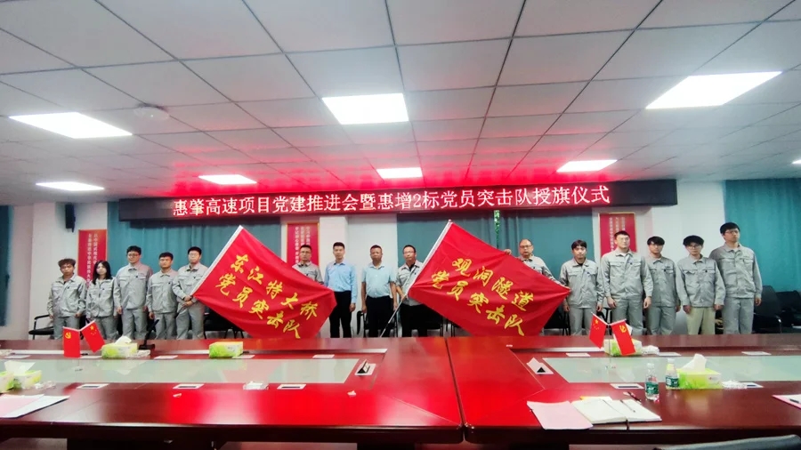 攻堅克難,黨員沖鋒在前。10月31日下午,惠肇高速項目黨建推進(jìn)會暨惠增土建2標(biāo)黨員突擊隊授旗儀式舉行;葜菔幸惶柟讽椖柯(lián)合黨委、一號公路項目工作專班臨時黨支部、惠城區(qū)一號公路專班臨時黨支部、博羅縣一號公路專班臨時黨支部、惠肇高速(惠州段)項目企業(yè)臨時黨支部有關(guān)負(fù)責(zé)人及黨員代表,博羅縣羅陽街道辦事處有關(guān)負(fù)責(zé)人,惠增土建2標(biāo)項目黨員等參加活動。
