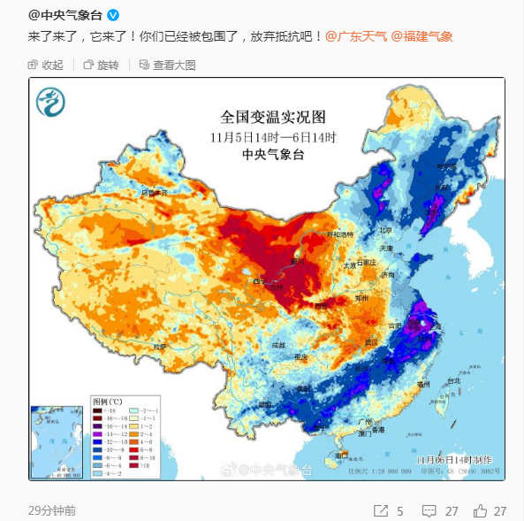 進(jìn)入11月,影響我國(guó)的冷空氣活動(dòng)逐漸趨于頻繁。
