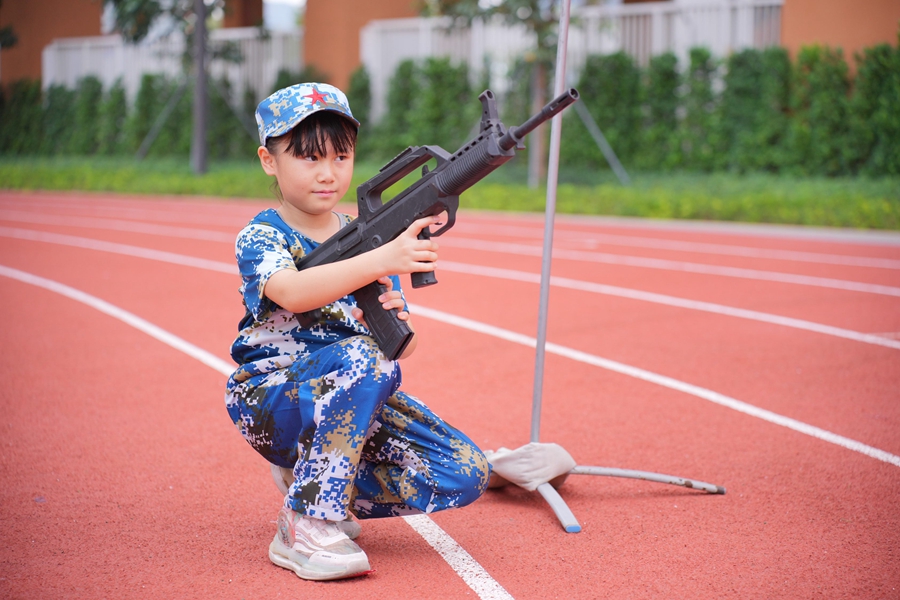 親子國防兵戎裝登場,家長斗志昂揚,孩子精神飽滿。據(jù)介紹,本次運動會以親子游樂為主,具體就是“大兵小兵齊上陣,軍事游戲大挑戰(zhàn)”。下午的操場上暖陽和煦,歡快的入場曲在空中回蕩,鮮艷的隊旗隨風(fēng)揚起。在總教官帶領(lǐng)下,身著迷彩服的“大兵小兵”們操練起剛勁有力的大會操,每個人臉上都洋溢著陽光自信的微笑。
