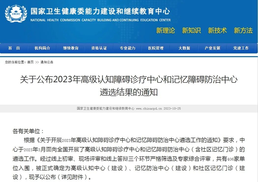 國家衛(wèi)生健康委能力建設(shè)和繼續(xù)教育中心于2023年3月面向全國開展了高級認知障礙診療中心和記憶障礙防治中心(含社區(qū)記憶門診)的遴選工作。工作開展以來,經(jīng)過嚴格篩選,專家綜合評審,共有406家單位入圍,包括168家高級認知中心。廣東省前期共有45家醫(yī)院參與申報高級認知中心,經(jīng)初審、現(xiàn)場評審、全國總答辯及專家綜合評審等多環(huán)節(jié)的嚴格篩選,最終廣東省21家醫(yī)院入選。