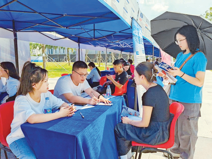 蘇梓康是惠州學(xué)院文學(xué)與傳播學(xué)院漢語言文學(xué)(師范)專業(yè)大四學(xué)生。經(jīng)過一番精挑細(xì)選后,他向兩家企業(yè)投遞了簡(jiǎn)歷,并和企業(yè)約好時(shí)間進(jìn)行下一步的溝通和面試。雖然還有一個(gè)學(xué)期畢業(yè),蘇梓康還是明顯感覺到了就業(yè)的壓力!扒岸螘r(shí)間,我參加?xùn)|莞教師的考試,發(fā)現(xiàn)考公考編太‘卷’了,感覺自己沒有太大的競(jìng)爭(zhēng)力!碧K梓康說,面對(duì)當(dāng)前的就業(yè)形勢(shì),他決定調(diào)整職業(yè)規(guī)劃,考慮往實(shí)體制造業(yè)文職方向發(fā)展,先就業(yè)再擇業(yè)。