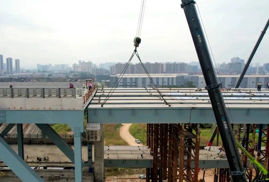 莞番高速公路最后一片鋼箱梁平穩(wěn)落下。