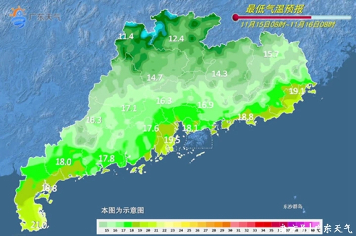 18日,全省晴間多云,早晨最低氣溫:粵北市縣6~9℃(高海拔山區(qū)3~5℃),南部市縣12~15℃,其余市縣10~12℃。