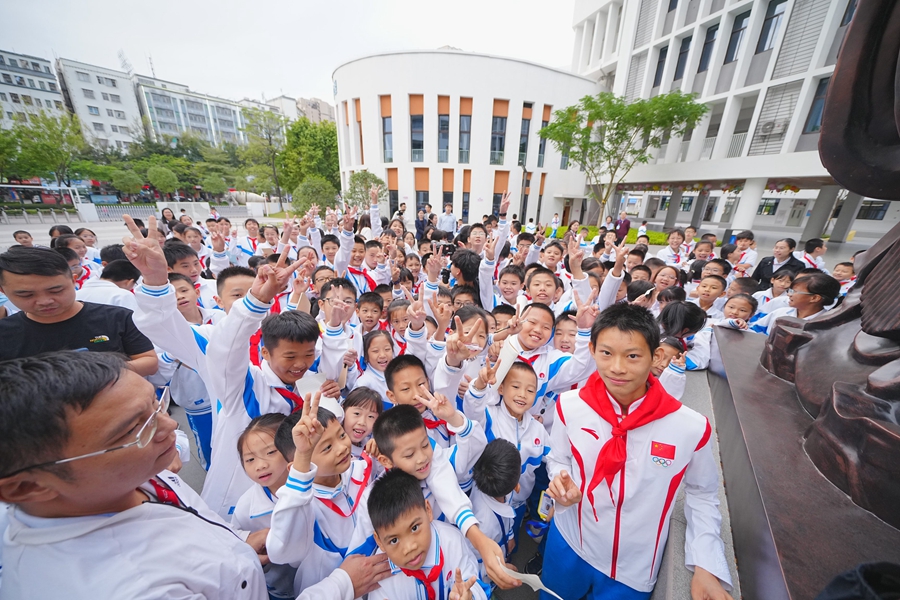 陳燁與師生們分享自己奪冠經(jīng)歷和練習(xí)心得歷程。他以“興趣是最好的老師”為主題,講述了自己從8歲初次接觸滑板,直到獲得亞運會冠軍這期間的心路歷程。他還結(jié)合自身經(jīng)歷,為同學(xué)們解答了如何突破瓶頸、解壓、兼顧滑板和學(xué)習(xí)等問題,強調(diào)不論正在經(jīng)歷著什么,一定要專注于自身,專注于自己做的事情,不要在意失敗,而要在失敗中吸取經(jīng)驗,未來才能獲得更多成功。學(xué)生代表為陳燁同學(xué)送上鮮花,佩戴紅領(lǐng)巾,對亞運冠軍的到來表示熱烈歡迎和由衷的感謝。
