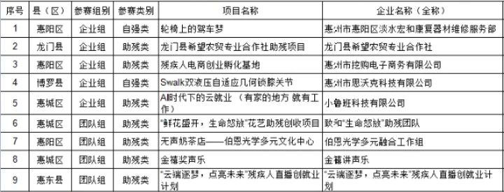 惠州項目人圍2023年廣東“眾創(chuàng)杯”殘疾人公益賽名單。