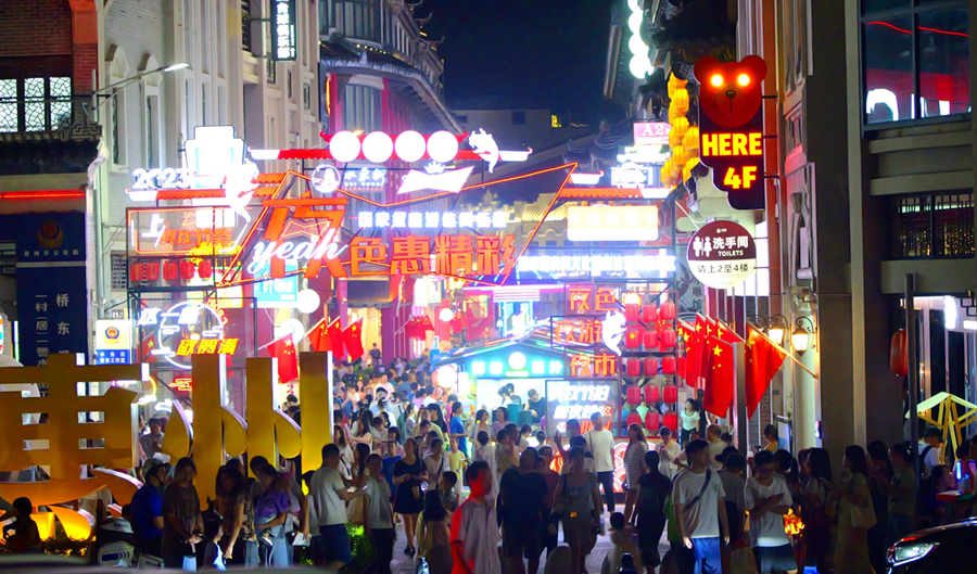 夜幕降臨,水東街人頭攢動。