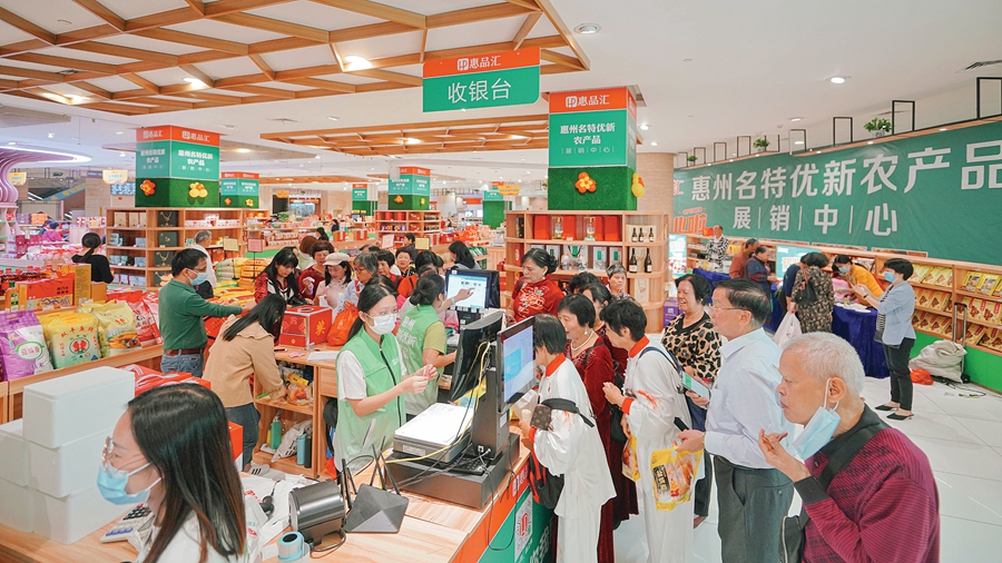 市民在惠州名特優(yōu)新農(nóng)產(chǎn)品展銷中心采購(gòu)黔西南州農(nóng)副產(chǎn)品;葜萑?qǐng)?bào)記者周楠 王建橋 攝