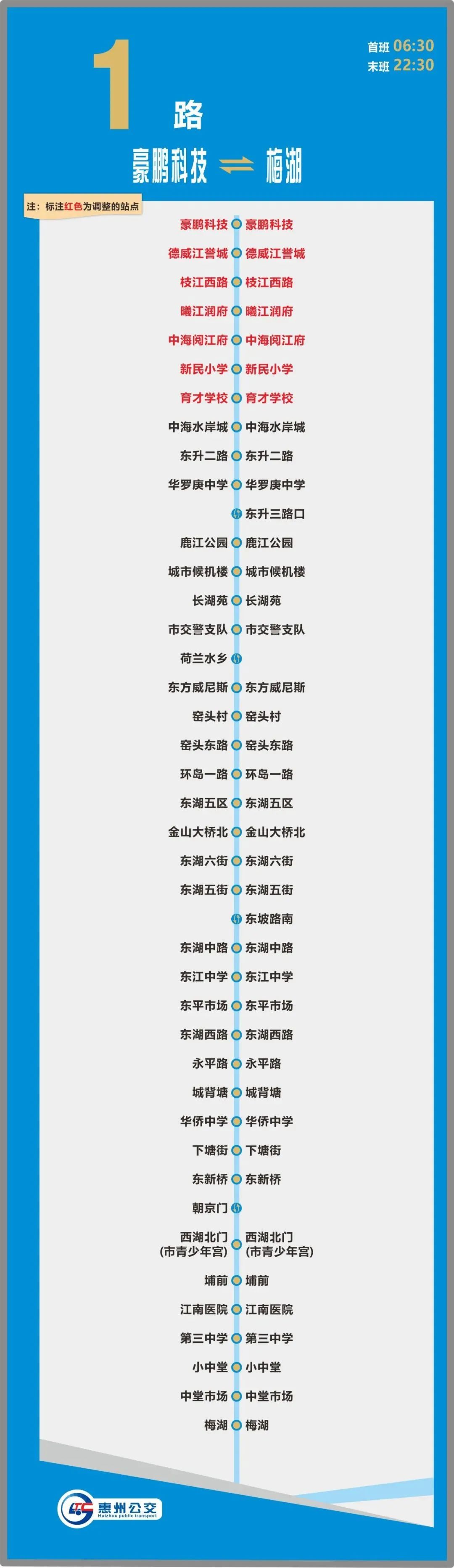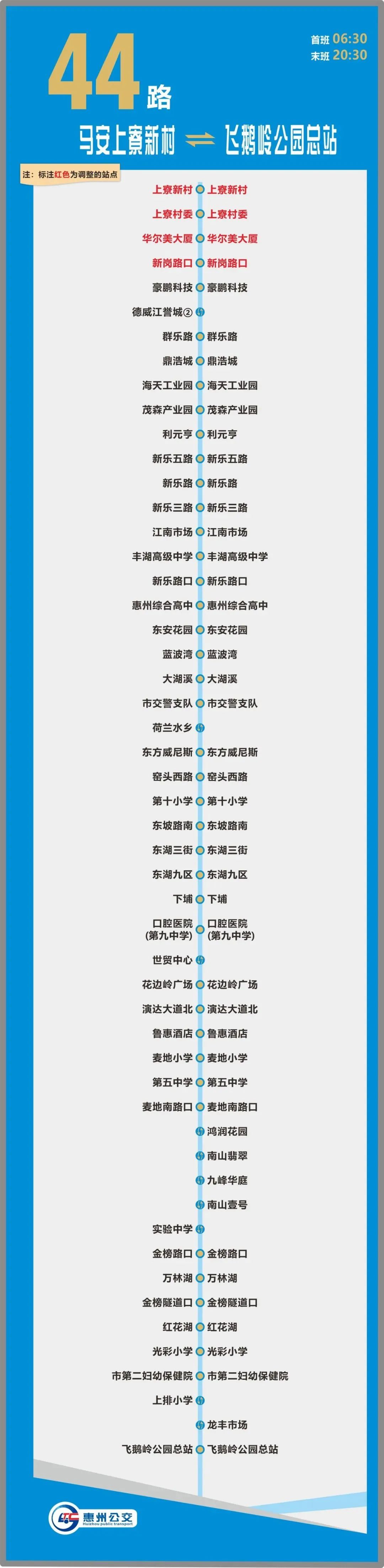 線路增設(shè)站點(diǎn):育才學(xué)校、新民小學(xué)、中海閱江府、枝江西路、江譽(yù)城五期、德威江譽(yù)城、豪鵬科技等7個(gè)站點(diǎn)。