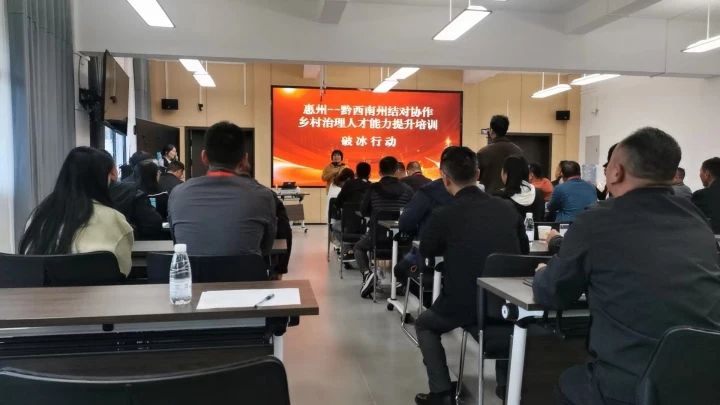 惠州—黔西南結(jié)對協(xié)作鄉(xiāng)村治理人才能力提升班專題培訓(xùn)現(xiàn)場。