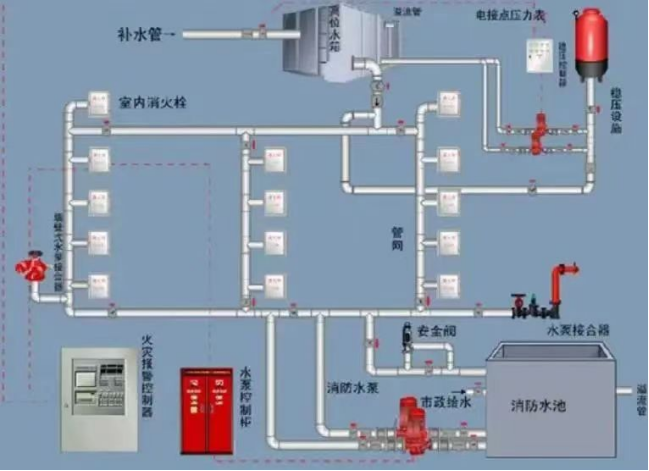 消火栓系統(tǒng)是由供水設(shè)施、消火栓、配水管網(wǎng)和閥門等組成的系統(tǒng)。
