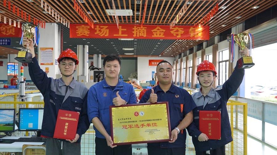 本此大賽惠州市技師學(xué)院共派出4支(8人)代表隊(duì)參加全國(guó)決賽。其中,鐘楊科、鄭文聰獲得儀器儀表制造工賽項(xiàng)“一等獎(jiǎng)(全國(guó)第一名)”;學(xué)生選手吳俊華、胡興高獲得機(jī)修鉗工賽項(xiàng)“一等獎(jiǎng)(全國(guó)第三名)”;教師選手朱曉添、白曉莉獲得機(jī)電設(shè)備維修工賽項(xiàng)“二等獎(jiǎng)”;學(xué)生選手葉文鋒、陳啟城獲得機(jī)電設(shè)備維修工“三等獎(jiǎng)”;教師觀貴泉獲得“優(yōu)秀教練”;惠州市技師學(xué)院獲得“冠軍選手單位”;葜菔屑紟煂W(xué)院曾在2017年首屆全國(guó)智能制造應(yīng)用技術(shù)技能大賽和2018年第二屆全國(guó)智能制造應(yīng)用技術(shù)技能大賽中,兩屆蟬聯(lián)冠軍選手單位。