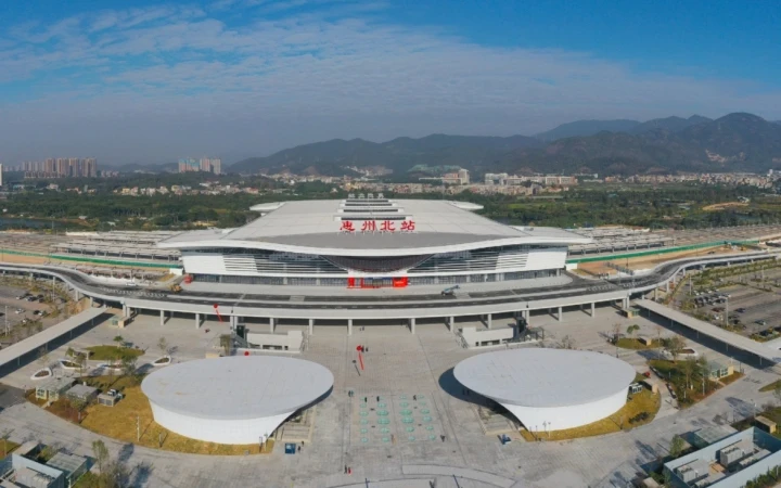 贛深高鐵是連接江西省贛州市與廣東省深圳市的高速鐵路,是我國“八縱八橫”高速鐵路主通道之一“京港(臺)通道”的重要組成部分;葜荼闭臼勤M深高鐵新建的最大站房,位于惠城區(qū)小金口街道。站房形式為設(shè)有高架候車室的線側(cè)平站,站場為7臺16線,2021年12月10日正式開通運(yùn)營。
