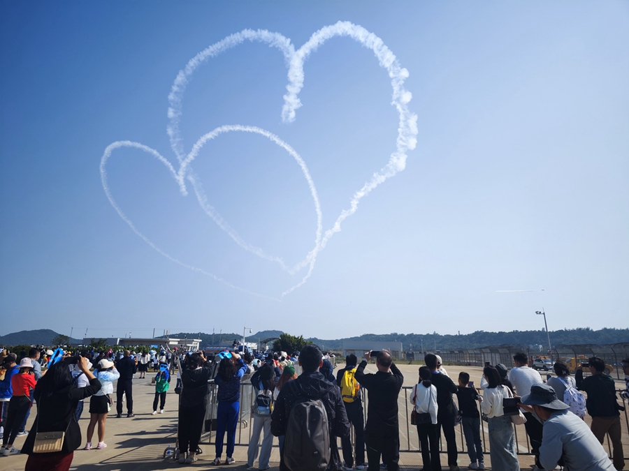 湖南山河飛行表演隊(duì)進(jìn)場(chǎng),現(xiàn)場(chǎng)觀眾加油助威。