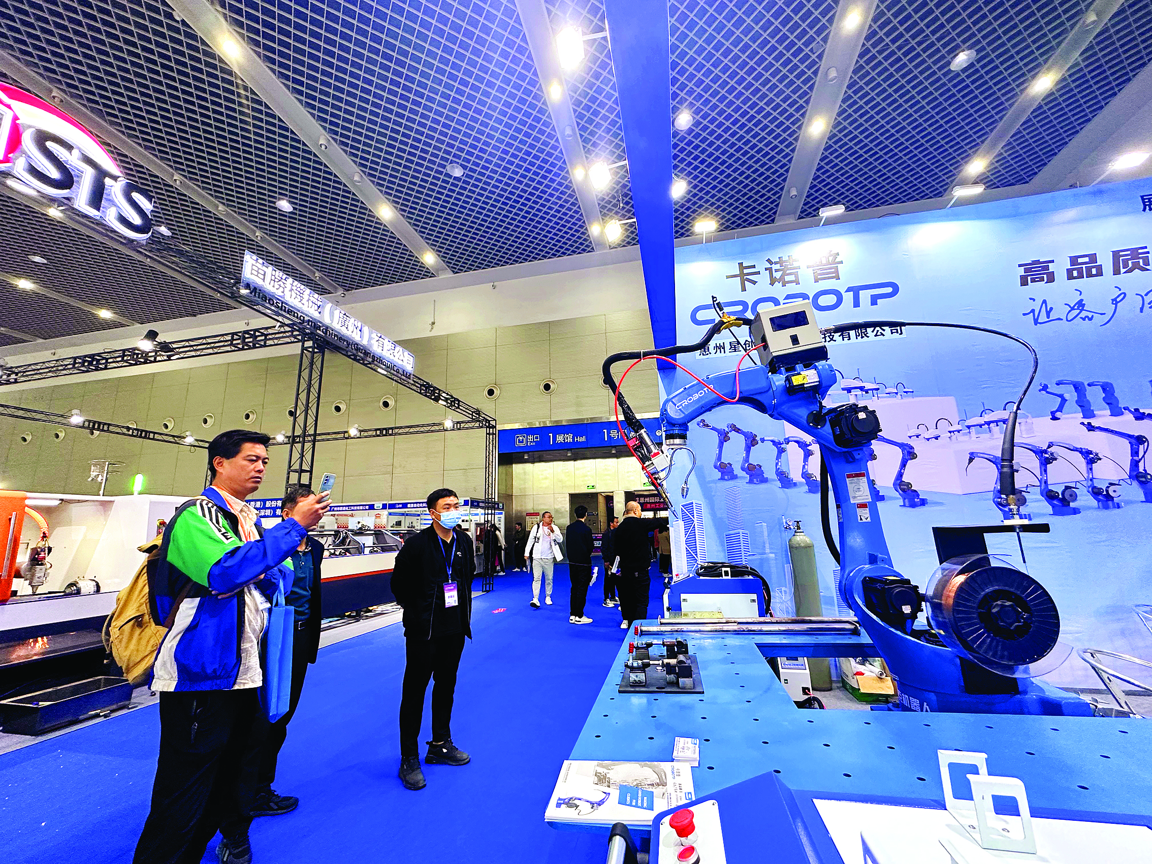在惠州會展中心主會場,展出的機器人自動切割裝備吸引了不少人關(guān)注。 惠州日報記者譚琳 龔妍 攝