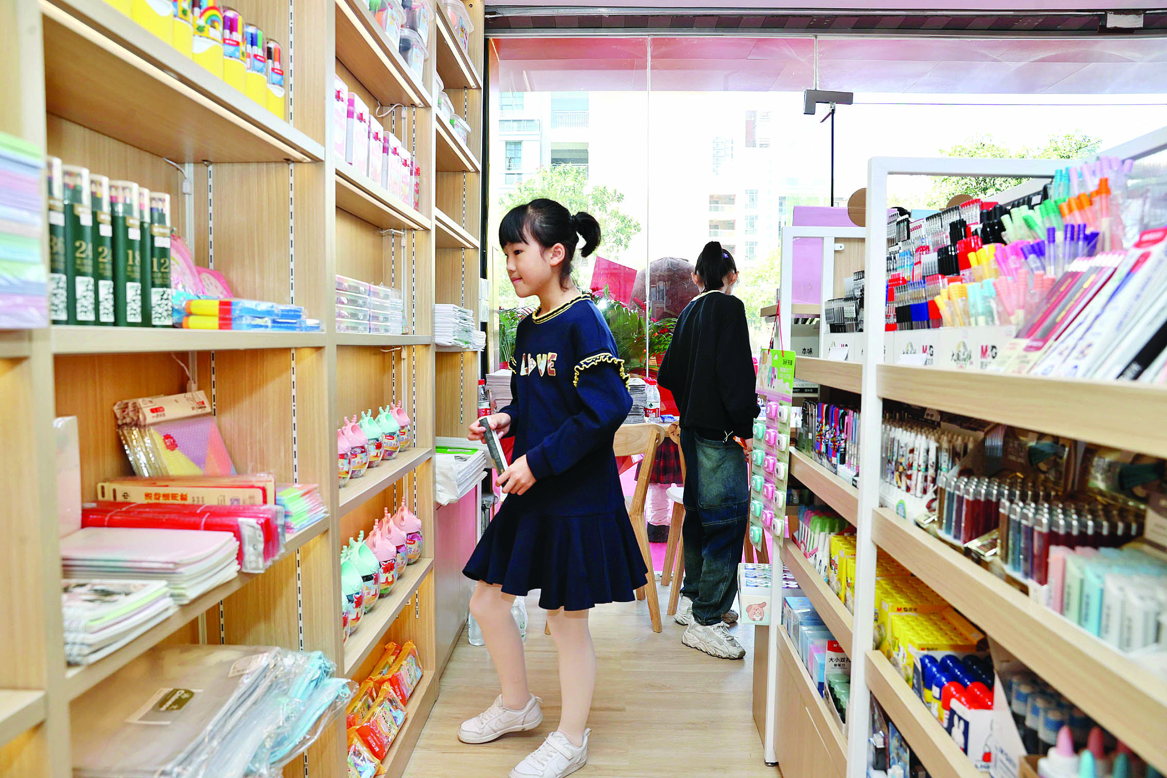小朋友在小惠同學(xué)驛站選購學(xué)習(xí)用品;葜萑請笥浾邨罱I(yè) 攝