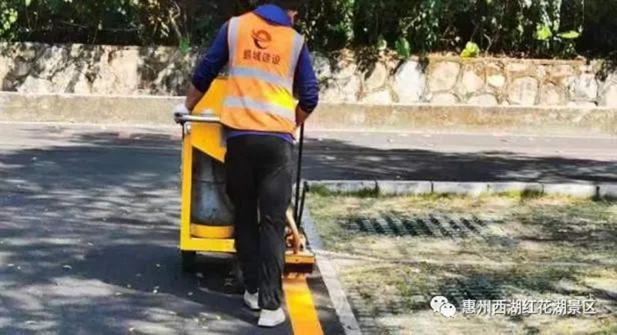 換上“新裝”的標(biāo)線醒目、美觀,令人眼前一亮。使沉悶的景區(qū)道路更加美觀,更顯生機(jī)。