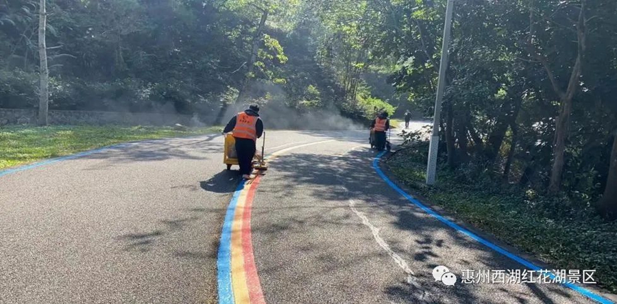 紅花湖綠道建成于2010年,是惠州市首條示范生態(tài)綠道,經(jīng)過(guò)多年的雨水沖刷、車(chē)輪摩擦、保潔清掃等原因,原有的標(biāo)線已出現(xiàn)不同程度的磨損和缺失,加上原有的標(biāo)線、標(biāo)識(shí)系統(tǒng)較為簡(jiǎn)單,規(guī)劃不夠合理,每逢周末、重大法定節(jié)假日景區(qū)客流量劇增時(shí),容易出現(xiàn)安全隱患,影響游覽秩序。
