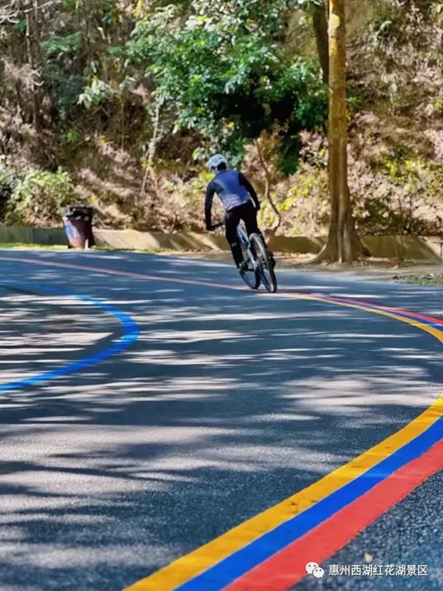 據(jù)了解,在按照不改變現(xiàn)有綠道交通組織方式、不大面積清除現(xiàn)有標(biāo)線原則上,組織專業(yè)人員對(duì)景區(qū)綠道標(biāo)線、標(biāo)識(shí)系統(tǒng)進(jìn)行翻新、完善,合理的加寬了雙向通行路段人行道,提高市民、游客步行安全和便利。增設(shè)了人行道雙色斑馬線,增加人行、騎行、電動(dòng)車(chē)等地面圖案標(biāo)識(shí),增強(qiáng)了綠道的辨識(shí)度,讓市民、游客能夠快速精準(zhǔn)選擇游覽通道。同時(shí)還更新了現(xiàn)有綠道中間標(biāo)線,將中線提升為紅黃藍(lán)三色“彩虹線”,在安全便利的基礎(chǔ)上美化道路。