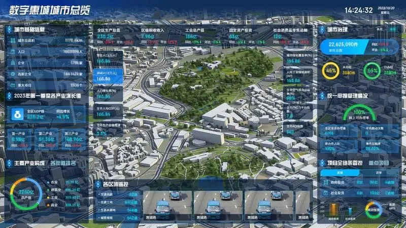 11月,惠城區(qū)憑借“惠城區(qū)智慧城市(一期)建設(shè)項目”創(chuàng)新實(shí)踐,獲評“中國領(lǐng)軍智慧城區(qū)”。圖為數(shù)字惠城城市總覽。