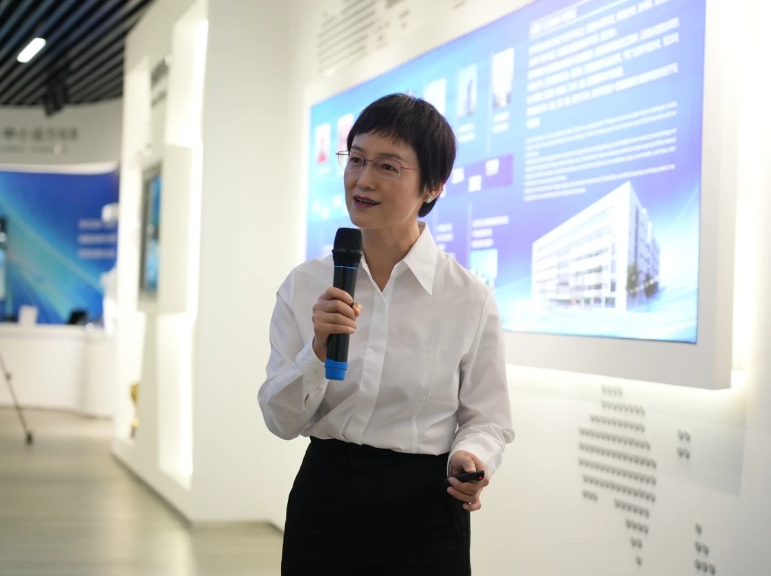 德賽工作人員講解公司發(fā)展歷程。