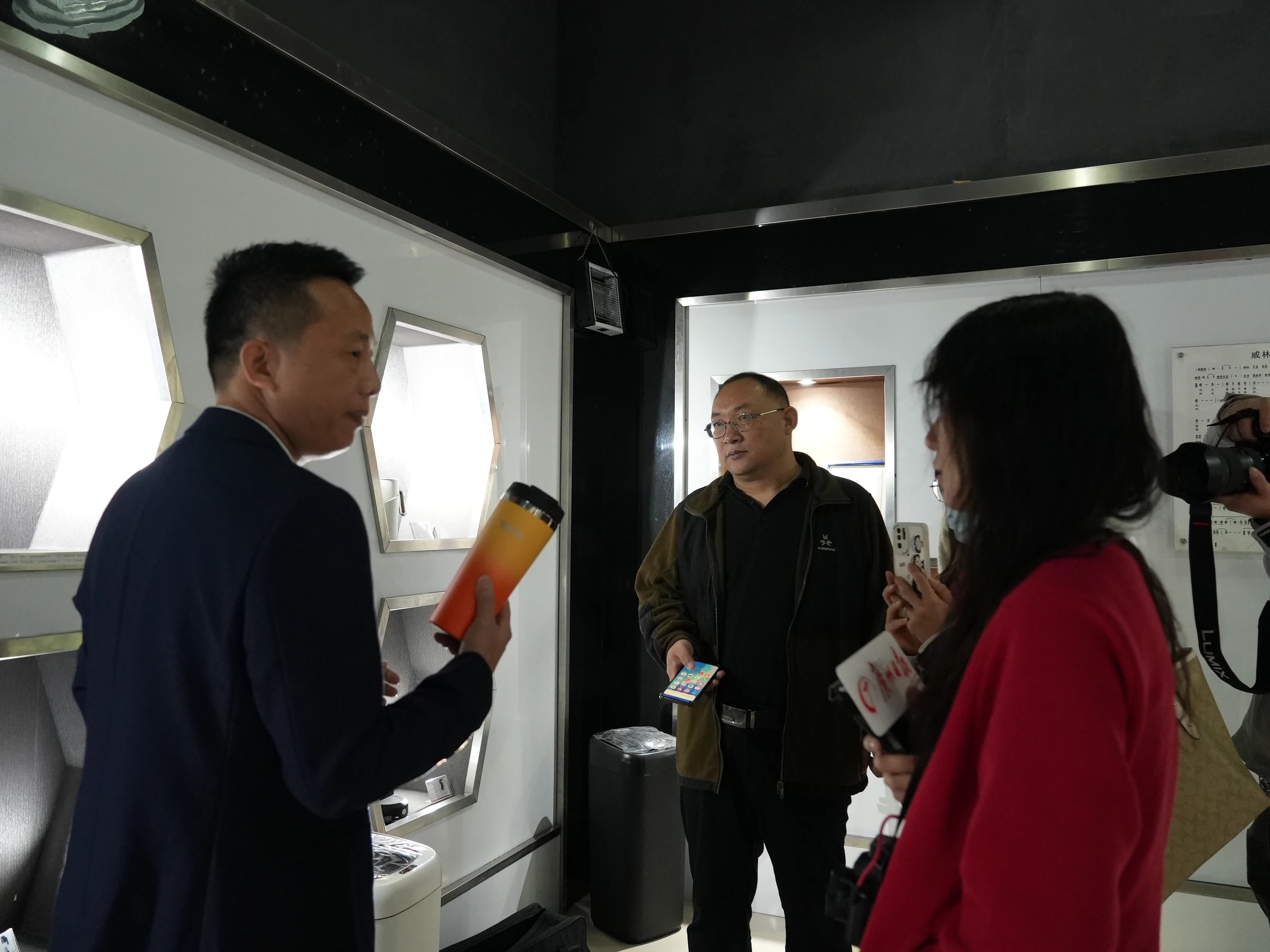 廣東威林科技股份有限公司董事長葉景濃給媒體記者講解產(chǎn)品功能。