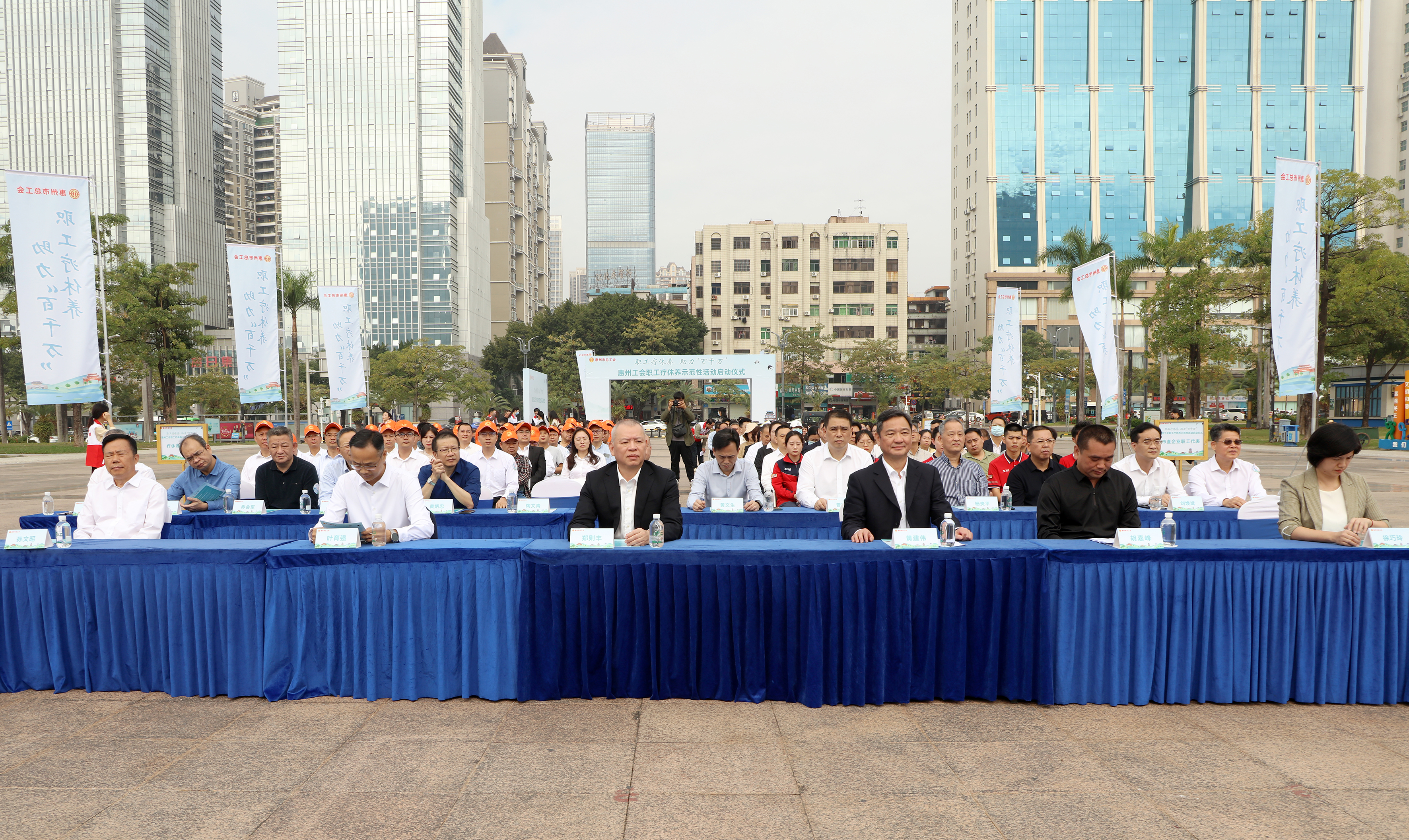 當(dāng)天,冬日的惠州依然溫暖,在市區(qū)江北體育館廣場(chǎng)前,百余名一線職工相聚,共同慶;葜莨(huì)職工鄉(xiāng)村療休養(yǎng)示范性活動(dòng)啟動(dòng)。