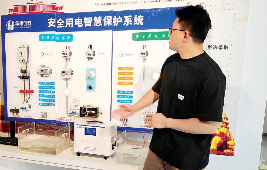 華邦創(chuàng)科首創(chuàng)研發(fā)“安全用電智慧保護系統(tǒng)”原理展示;葜萑請笥浾吆羁h軍 攝