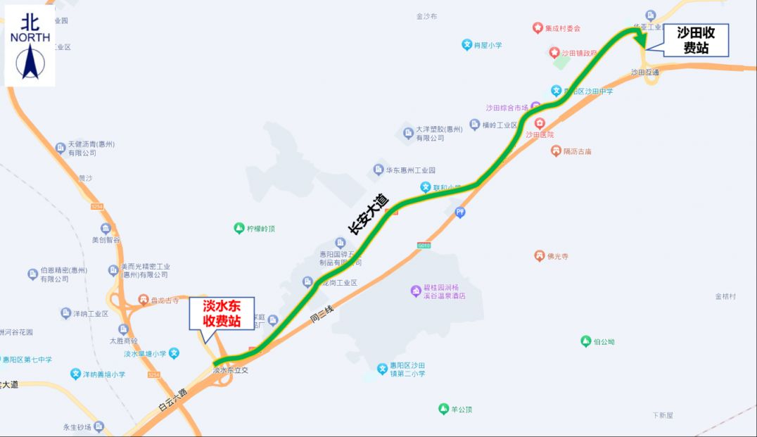 2.淡水東收費站:交通管制時間內,原計劃從淡水東收費站上高速的貨車,可通過長安大道→深汕西高速沙田收費站上高速。