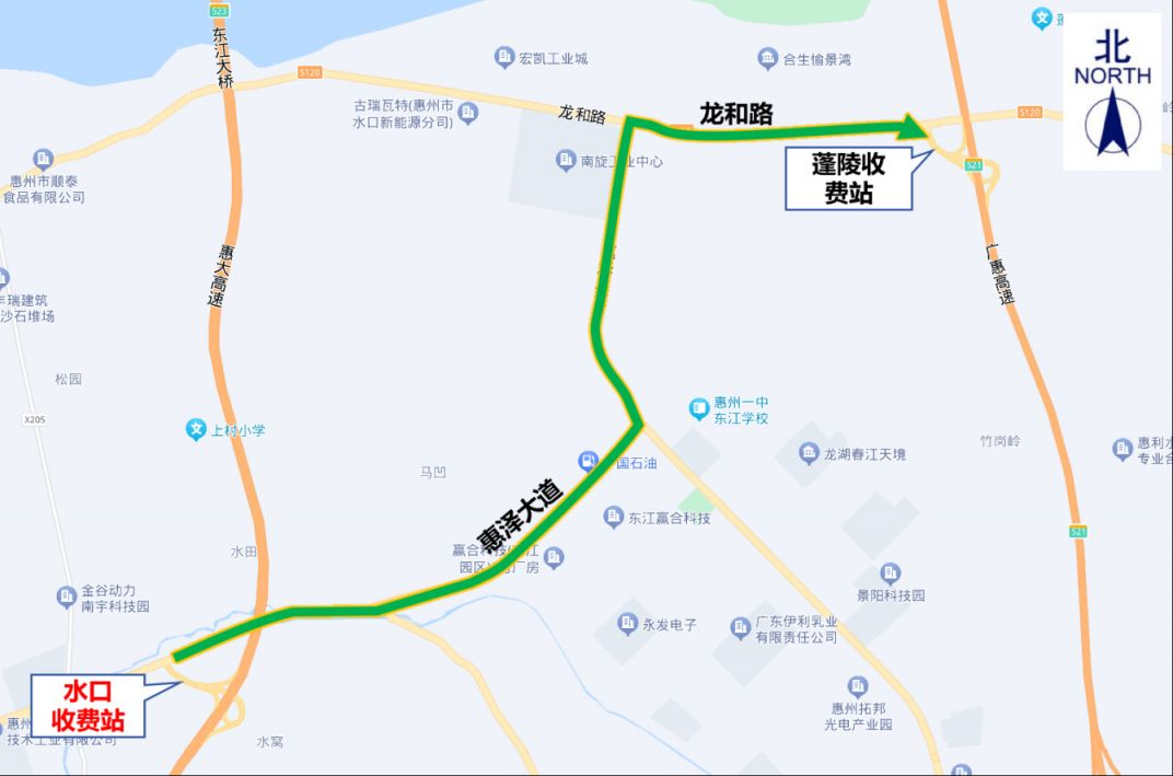 5.水口收費站:交通管制時間內,原計劃從水口收費站上高速的貨車,可通過惠澤大道→龍和路(省道S120)→蓬陵收費站上高速。