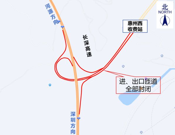 G25長深高速公路惠州段(惠河高速公路)惠州西收費站進、出口匝道全部封閉,禁止車輛通行。