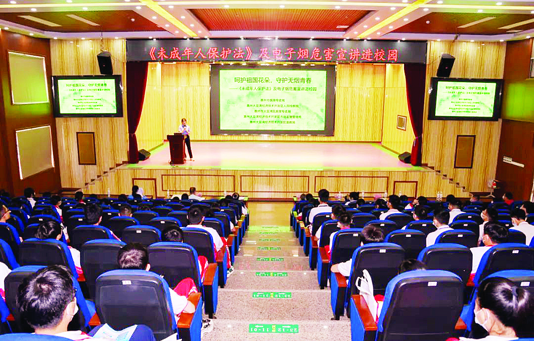 2022年5月以來,惠州煙草先后走進惠州衛(wèi)生職業(yè)技術(shù)學(xué)院、大亞灣區(qū)金澳實驗學(xué)校、惠陽區(qū)第一中學(xué)、博羅縣九潭中學(xué)、惠東縣吉隆中學(xué)等學(xué)校開展11次進校園普法宣傳活動。普法人員向?qū)W生發(fā)放電子煙普法宣傳單,贈送知識讀本和法律資料,提醒同學(xué)們增強自我防范意識,自覺遠離一切形式的吸煙行為,共同營造無煙校園環(huán)境。