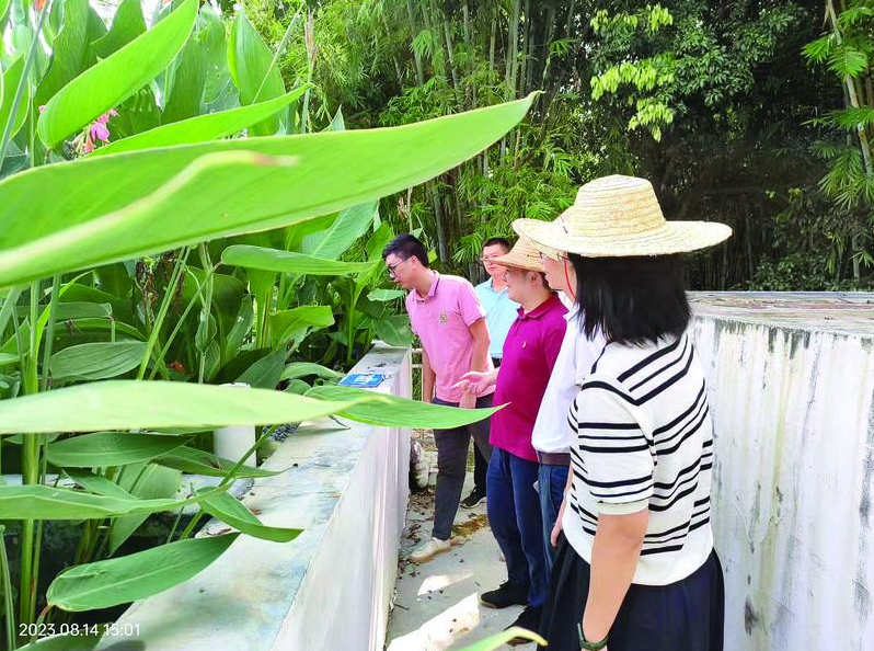 村(社區(qū))監(jiān)督站工作人員開展污水設施監(jiān)督檢查。