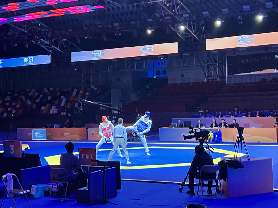 12月27日,惠州市體育運動學(xué)校培養(yǎng)輸送的運動員王要錫在2023年全國跆拳道冠軍總決賽中獲得男子80以上公斤級冠軍。