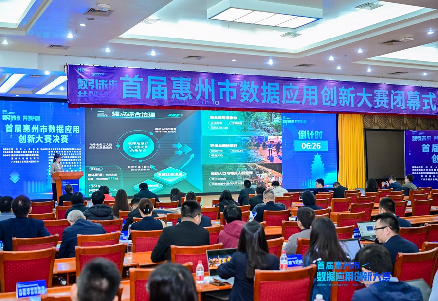 首屆惠州市數(shù)據(jù)應(yīng)用創(chuàng)新大賽閉幕現(xiàn)場。