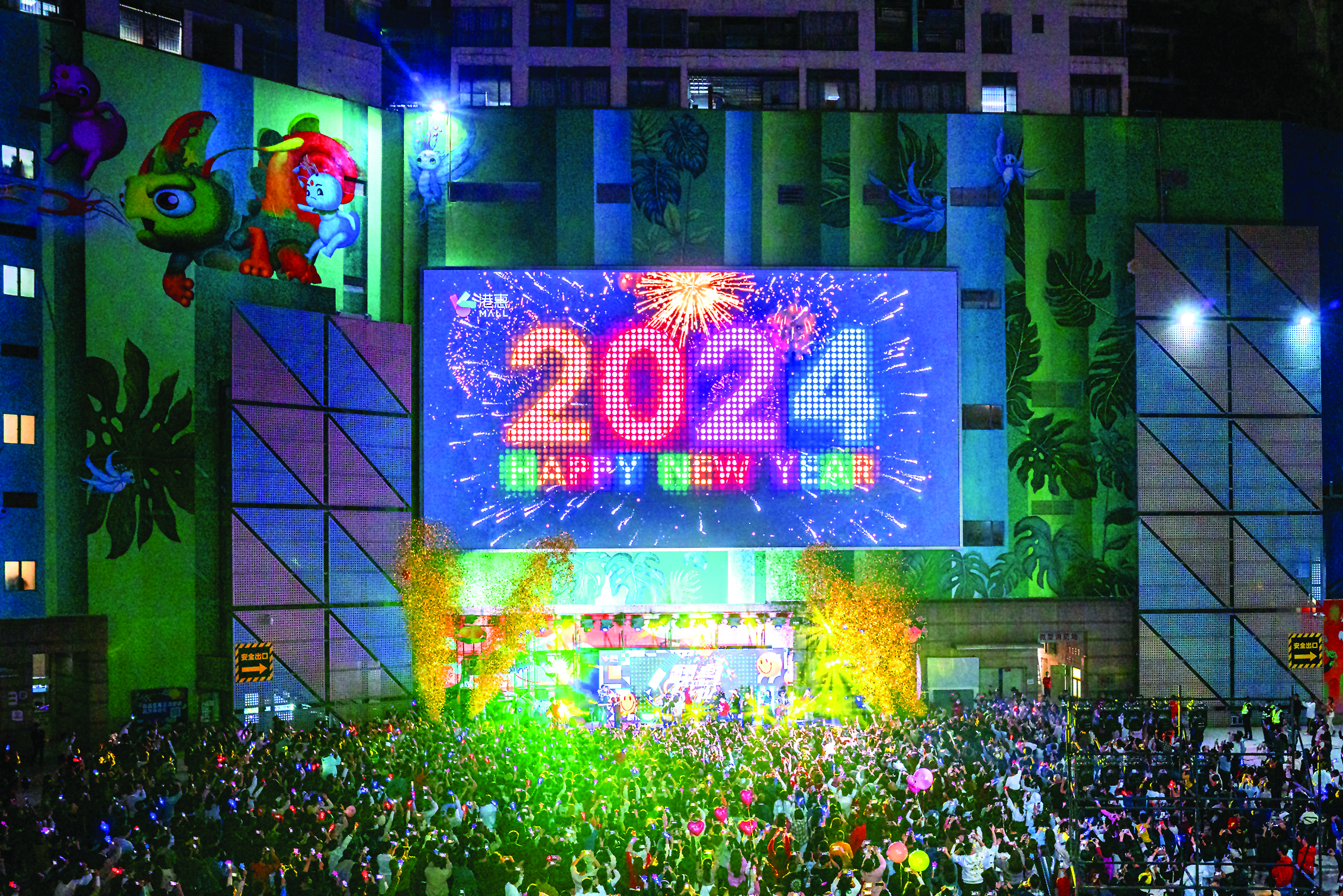 2023年12月31日晚,惠州市區(qū)港惠新天地,市民一起倒數(shù),歡慶新年的到來。 惠州日報(bào)記者鐘暢新 通訊員李曉英 攝