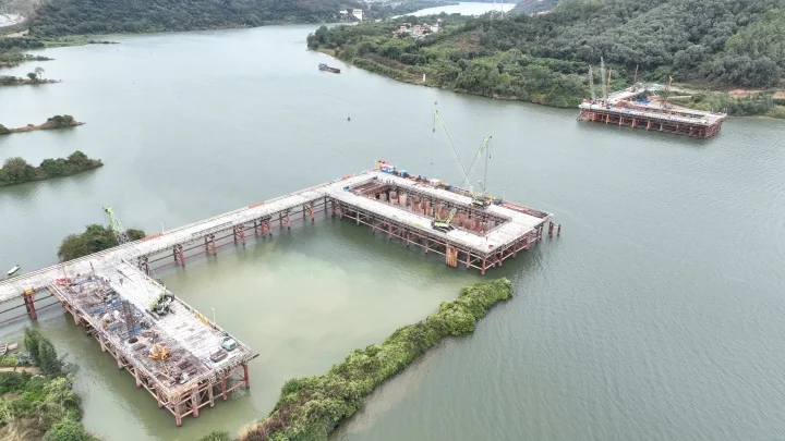 惠肇高速惠州段先行工程東江特大橋施工現(xiàn)場。