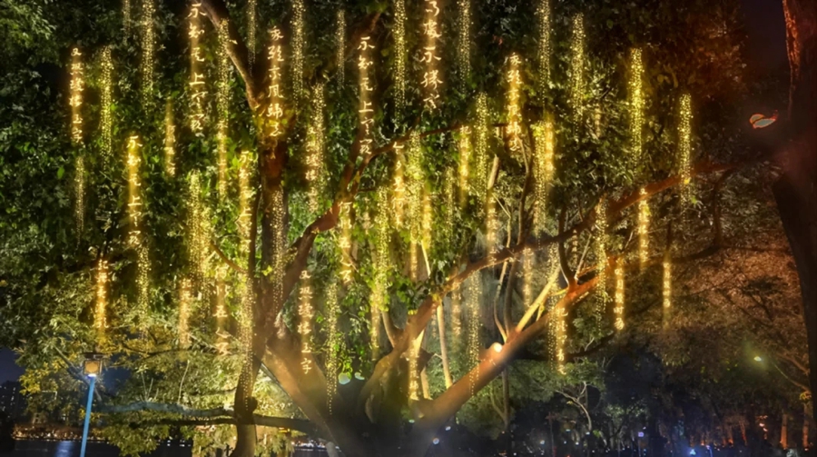 亮點(diǎn)三,增加展示區(qū)域,滿足不同人群需求。增加了點(diǎn)翠洲、芳華洲、豐湖書院等展示區(qū)域,豐湖書院在進(jìn)一步增強(qiáng)燈光效果的同時(shí),夜間也同步開放,在點(diǎn)翠洲、芳華洲打造仿似螢火蟲般滿天飛舞的夢(mèng)幻場(chǎng)景,吸引更多年輕群體打卡拍照。